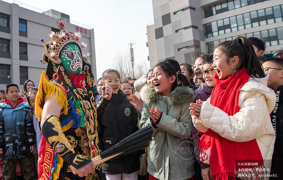 2月14日,正月十七,太原市光明小学举办开学典礼暨新春游园会,锣鼓舞狮、川剧变脸等非遗项目营造出欢乐迎新氛围。©山西新闻网 发|特约摄影师 聂行明