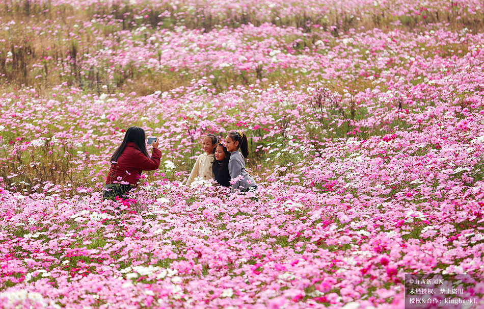 10月26日,深秋时节,临汾市襄汾县城北汾河景观带内成片的波斯菊花迎来盛花期,白色、粉色、红色等各色花朵交织在一起,绚丽多彩,美不胜收。©山西新闻网 发|特约摄影师 李现俊