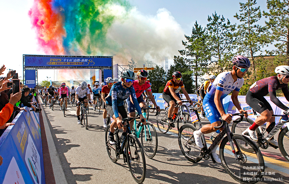 5月2日,临汾市永和县第三届自行车挑战赛在黄河一号旅游公路激情开赛,600余名选手逐梦竞速度假日。©山西新闻网 发|特约摄影师 李现俊