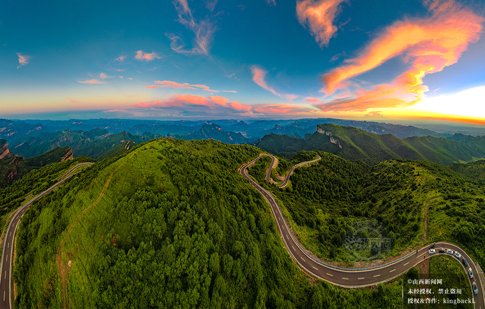 8月21日傍晚,晋中市左权太行北天池现绝美晚霞,漫天红云与蜿蜒于山脊的太行一号旅游公路不期而遇,构成一幅震撼人心的壮丽画卷。©山西新闻网 发|张文军 摄