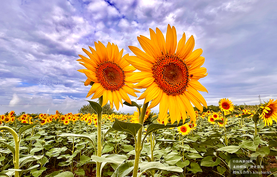 8月16日,运城市平陆县的千亩油葵竞相绽放,放眼望去,盛开的油葵花像一张张金色“笑脸”,景美如画。©山西新闻网 发|郝健 摄