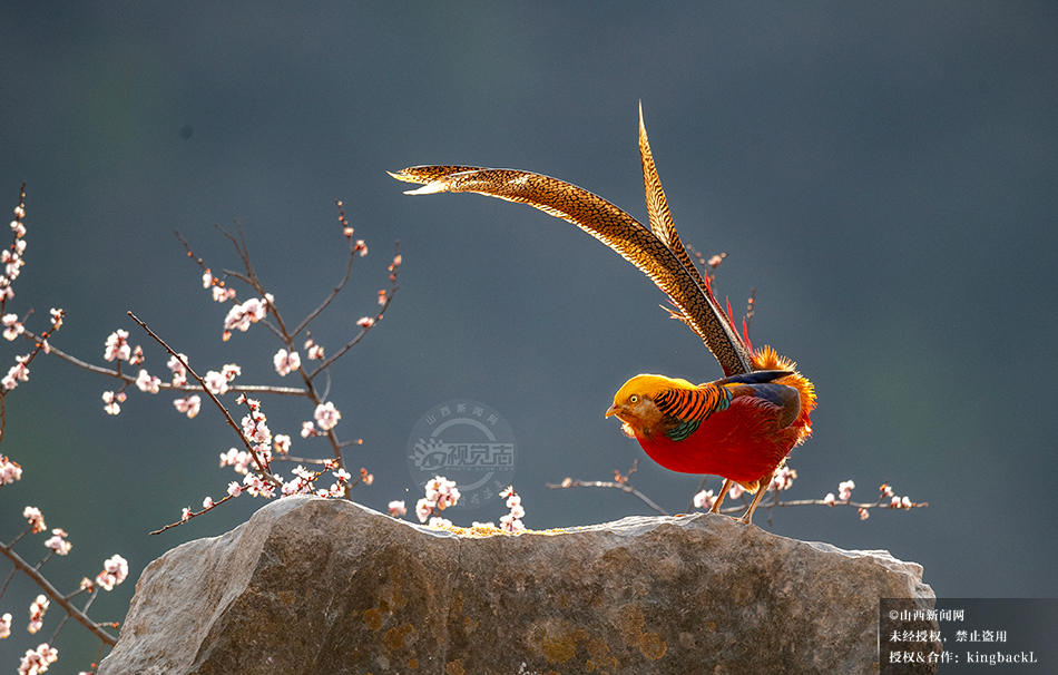 4月初,临汾市翼城县西闫镇泉头村,有鸟中“皇后”美称的红腹锦鸡正在泉头村觅食、起舞,与现在正盛开的桃花相映成趣,十分美观。 ©山西新闻网 发|特约摄影师 赵卫东