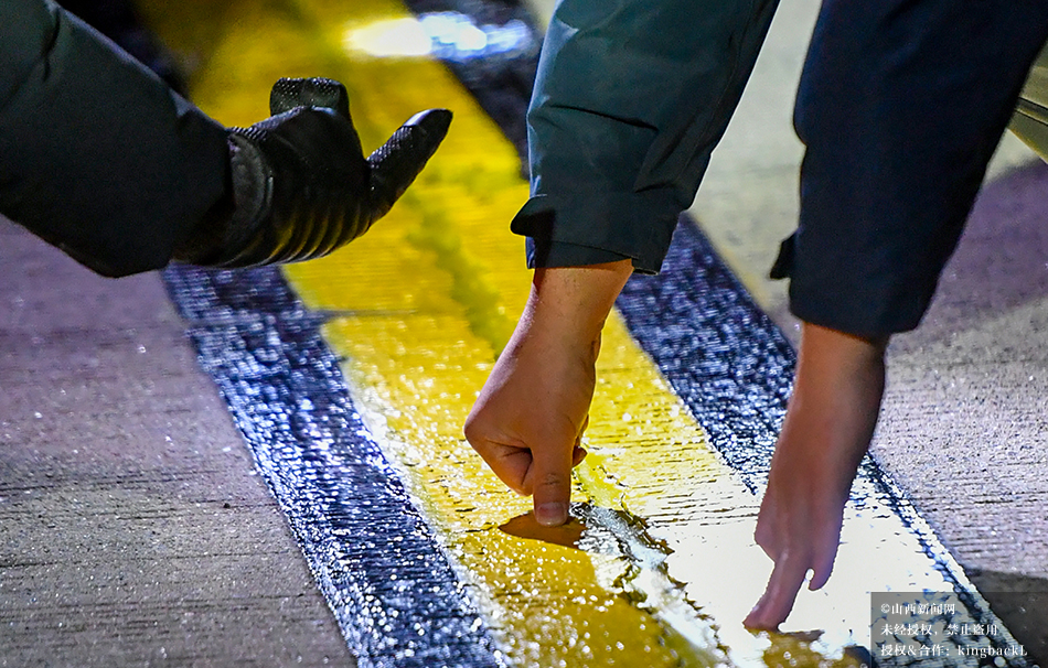 12月25日,太原武宿国际机场新跑道正式投运。图为工作人员对跑道标志线进行凝固度检测。©山西新闻网 发|韩双喜 米国伟 摄