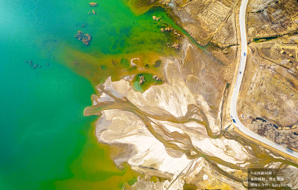 11月23日,航拍镜头下的原平市观上水库尽显生态之美。高空俯瞰,水库宛如一面碧绿明镜镶嵌于群山之间,倒映两岸山色,勾勒出人与自然和谐共生的田园画卷。©山西新闻网 发|樊晓东 摄