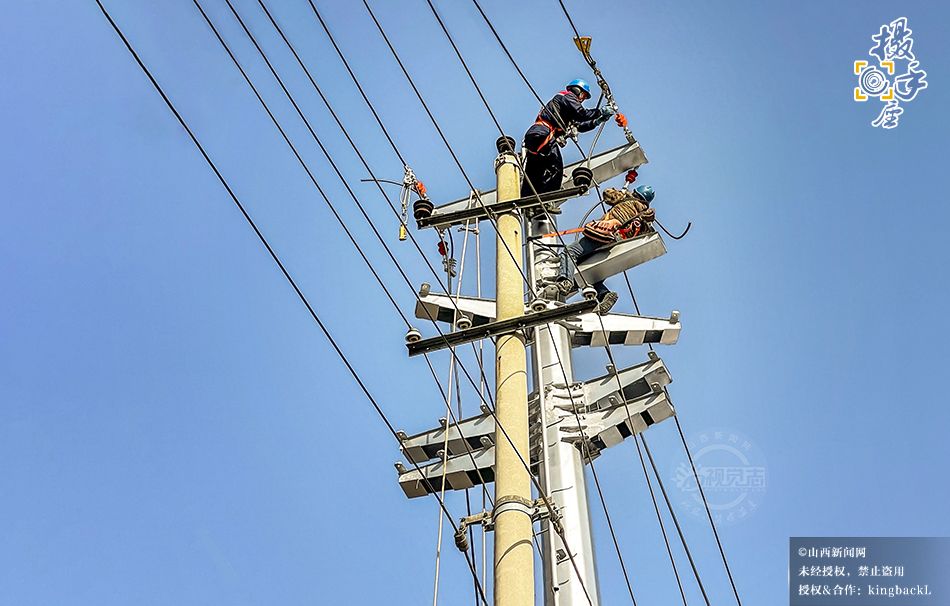 12月29日,乡宁县电力运维人员在进行电力线路增容改造工作,为即将到来的春检高峰作好用电保障。©山西新闻网 发|李秀英 摄