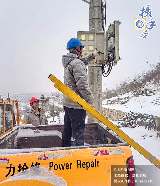 12月31日,大雪侵袭乡宁,关王庙乡太儿凹村村民张胜发家中突发用电故障。乡宁分公司关王庙供电所张海龙、武春龙、赵磊接报后火速赶赴现场,迅速排查出积雪压裂进户线接头的问题,20分钟内完成抢修恢复供电,以高效服务温暖寒冬里的群众。©山西新闻网 发|赵玉虎 摄