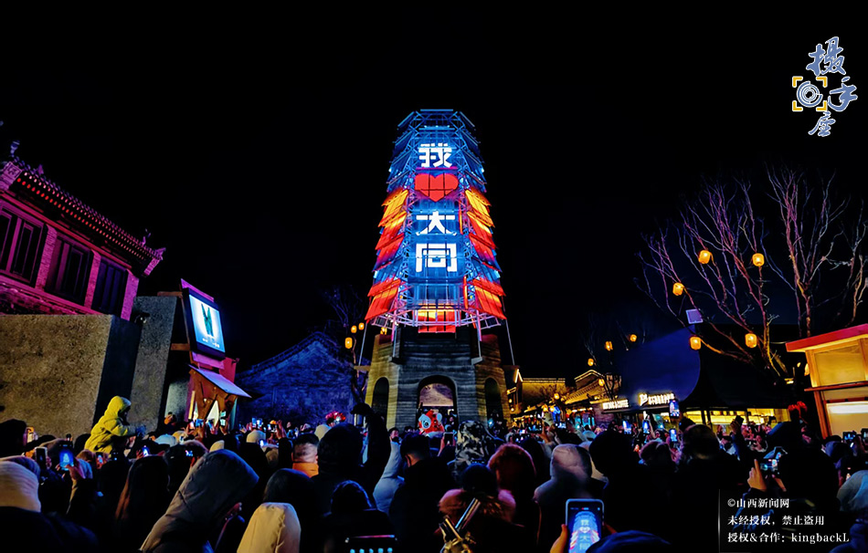 12月31日晚,大同古城东南邑丝路广场跨年夜现场,丝路塔亮起“我爱大同”主题灯光,市民游客齐聚,伴电子烟花秀迎接2026年,这场古今交融的活动尽显古城文旅活力。©山西新闻网 发|特约摄影师 孟帅