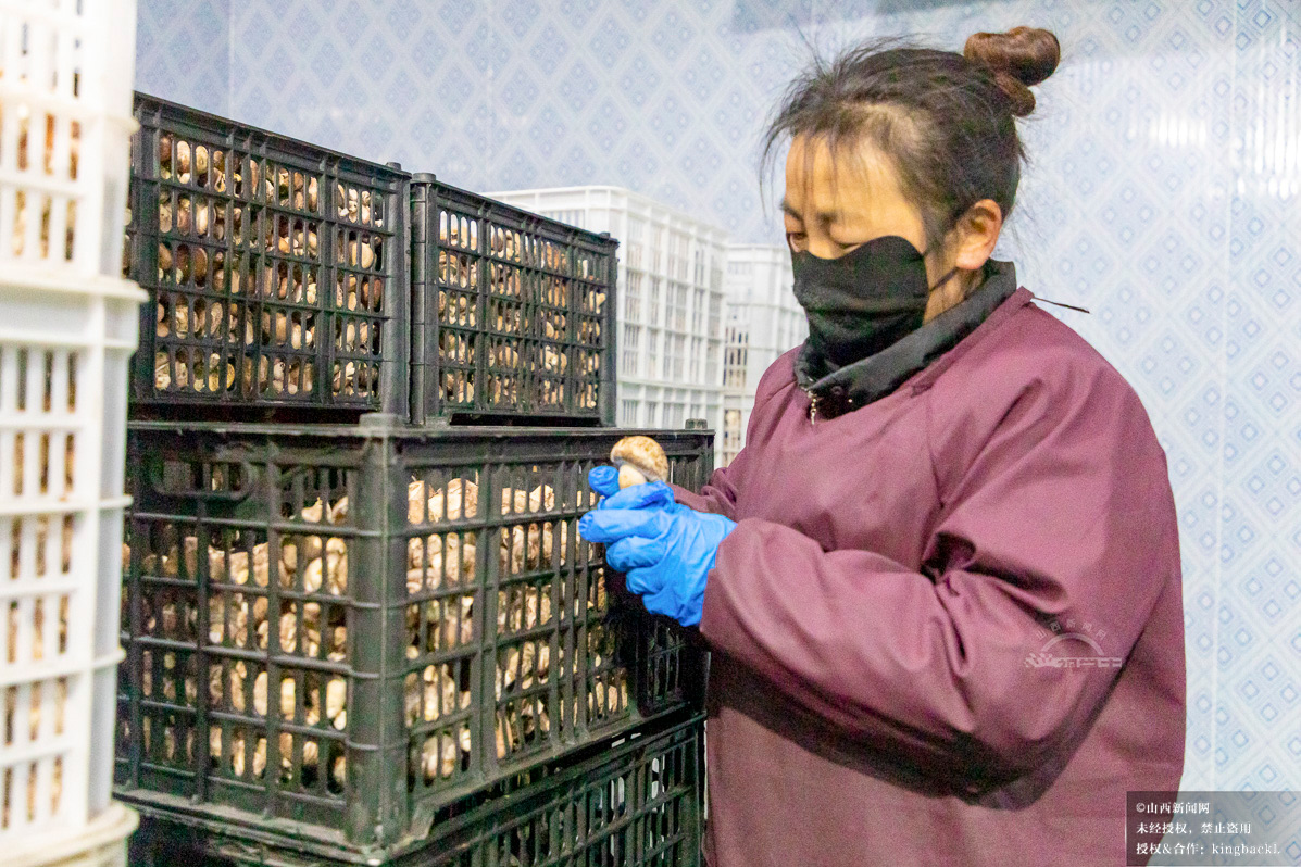 工人们穿梭其间,娴熟完成采摘、分选、装框、搬运等工序,作业流程规范高效,新鲜菌菇源源不断销往各地市场。