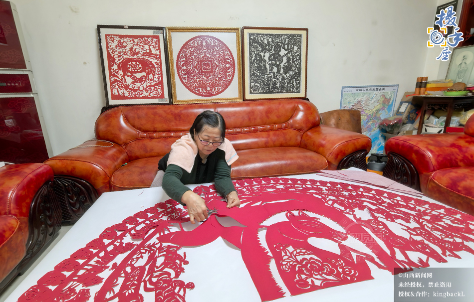 岁聿云暮,春祺将至,2026丙午马年踏歌而来。近日,在这辞旧迎新的美好时节,山西省工艺美术大师、省级非物质文化遗产代表性传承人、孝义剪纸传承人郭润芝耗时4个多月匠心创作,一幅2.5米×2.5米的巨型团花剪纸《百马呈祥图》惊艳亮相。作品以精湛剪刻技艺喜迎新春、传递吉祥,让千年非遗文化在马年到来之际焕发出别样的新春光彩。©山西新闻网 发|李竹华 摄