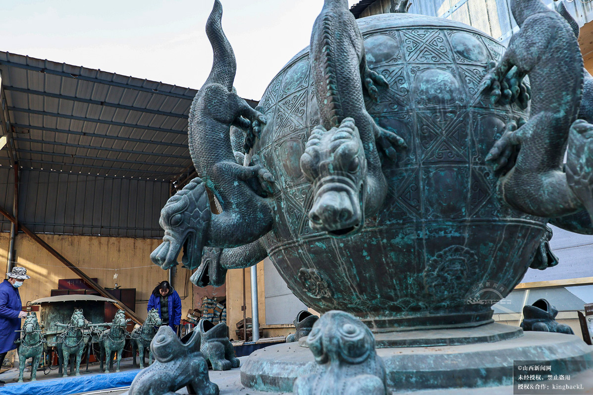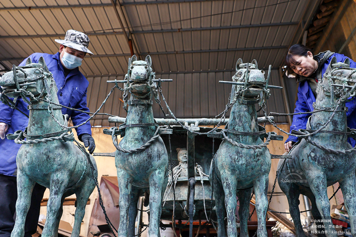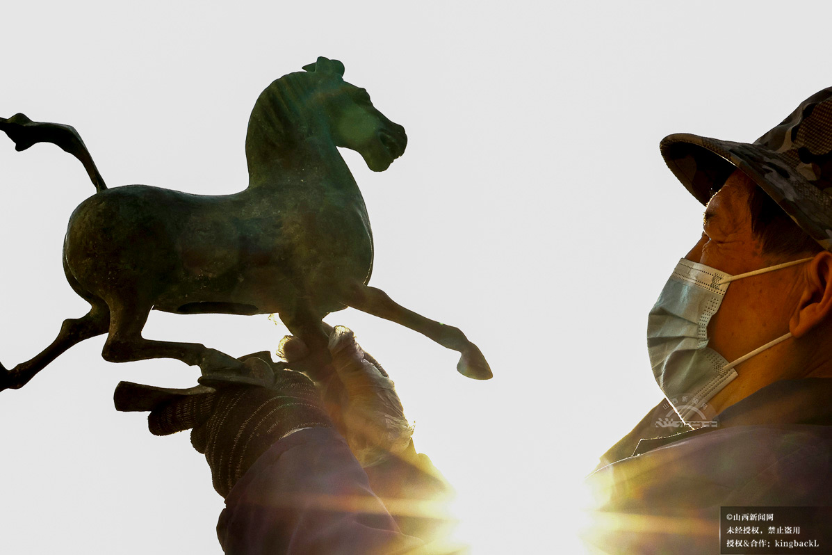 工艺师手持青铜构件,比对战马的比例尺寸。作为非遗大县,新绛每逢新春便迎来非遗创作的热潮,各类非遗项目百花齐放、各展风采,为新年增添浓厚的文化韵味。