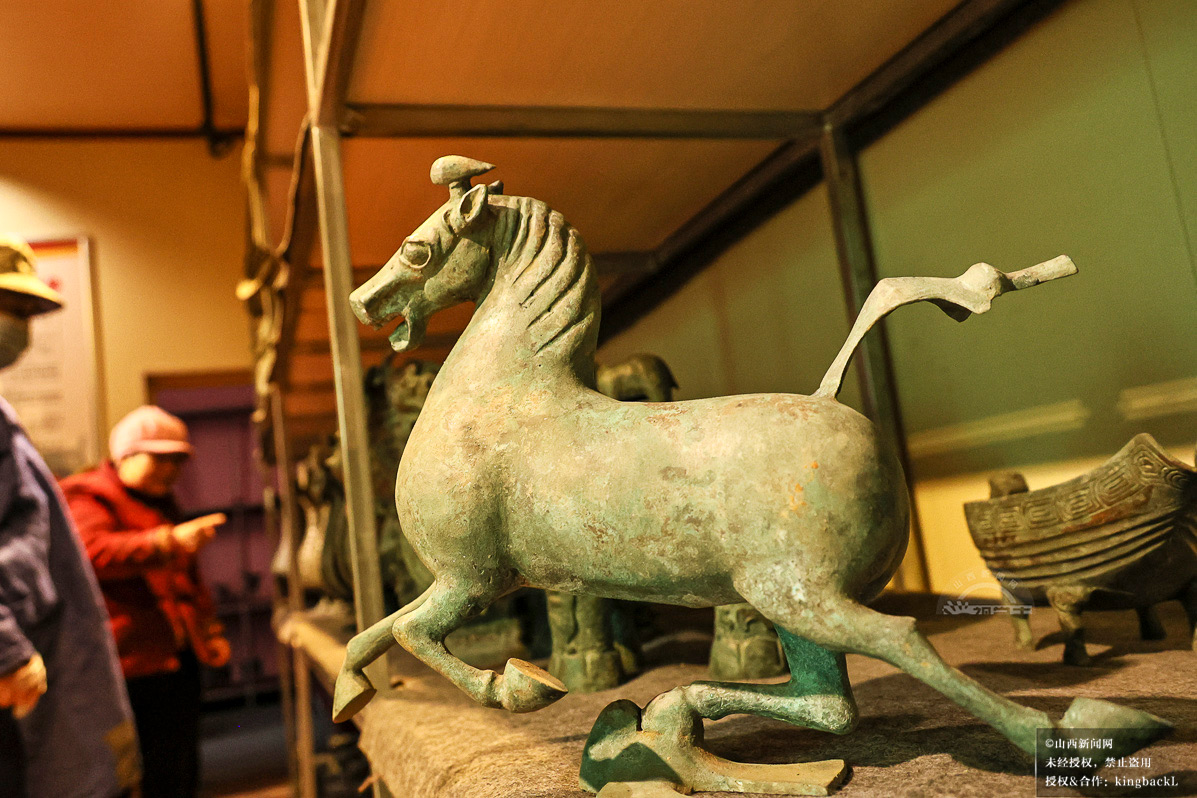 工艺师在展品馆内整理青铜马系列成品,古铜飘香的作品吸引着参观者的目光。除仿古青铜器外,国家级非遗绛州澄泥砚、省级非遗绛州石雕、绛州木版年画等也纷纷推出生肖新品,以“马上封侯”“马报平安”等吉祥主题献礼新春。