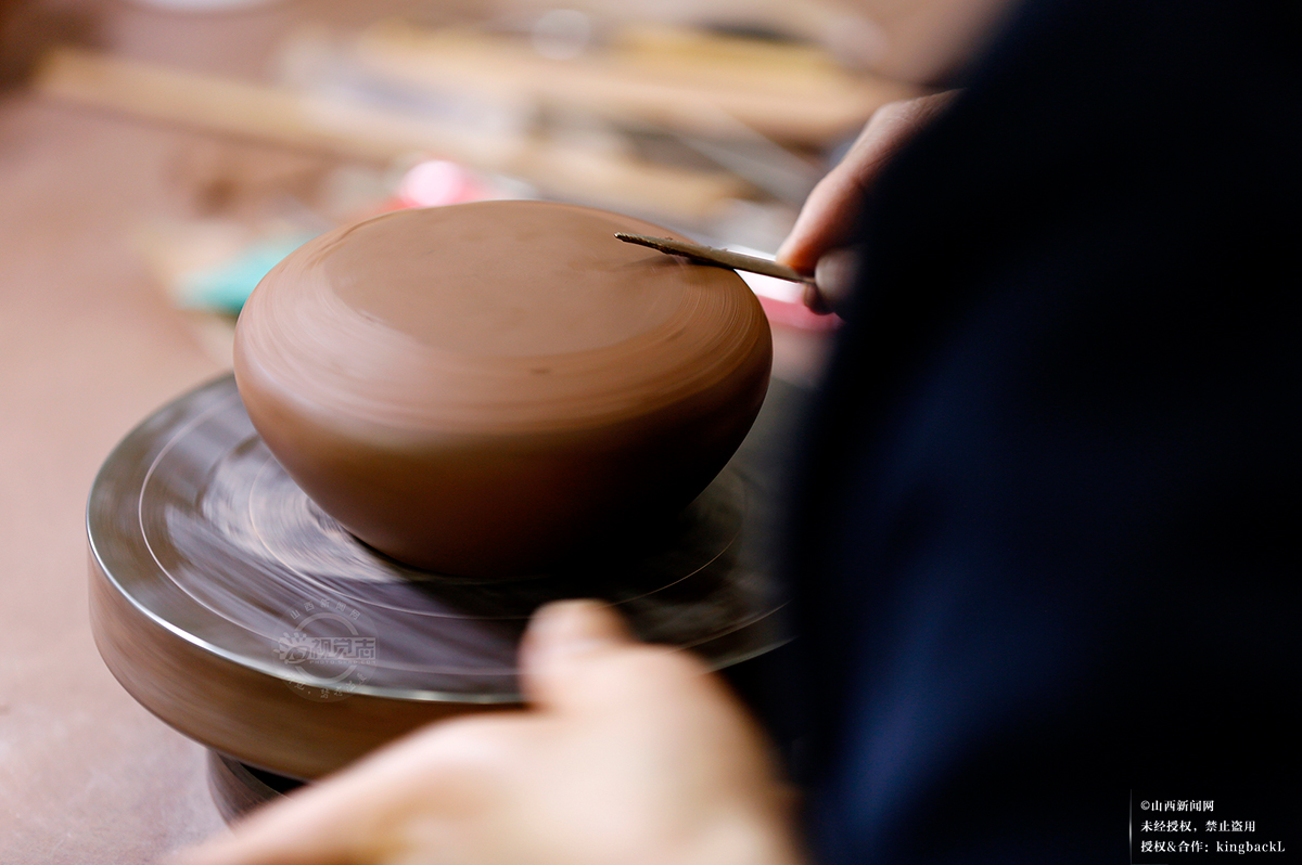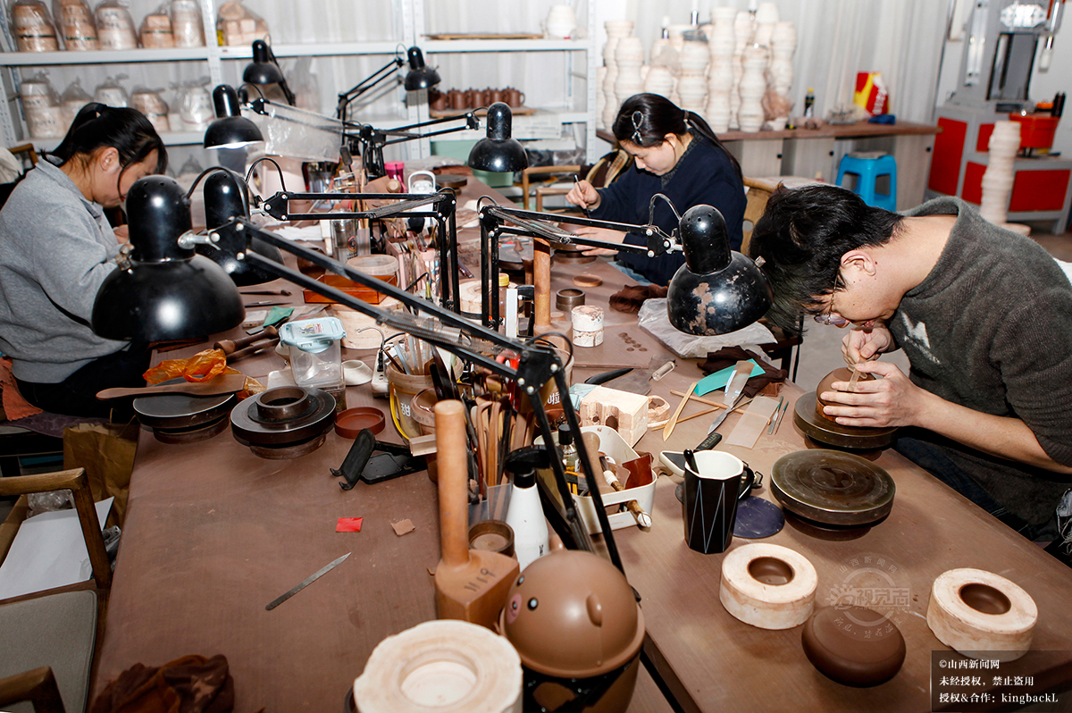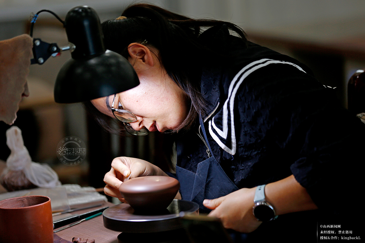 在乡宁紫砂小镇的工作坊内,老艺人与年轻工匠默契配合,传承与创新在此碰撞。