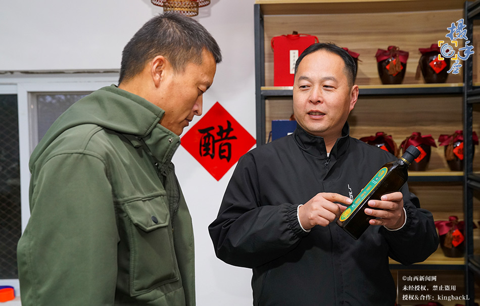 1月19日,芮城县学张乡斜口村,当地一醋坊负责人向游客展示匠心酿制的菊花醋。这项传承百年的酿醋技艺,经38道工序、一年以上陈酿而成,以五谷与菊花、苹果等果品为原料,成就“色泽红棕、酸味柔和、醇香回甜、久存不腐”的特色。该工艺2018年获评芮城县非物质文化遗产,2020年入选运城市非遗,在不断完善中守护着晋南醋香的文化根脉。©山西新闻网 发|董应赞 摄