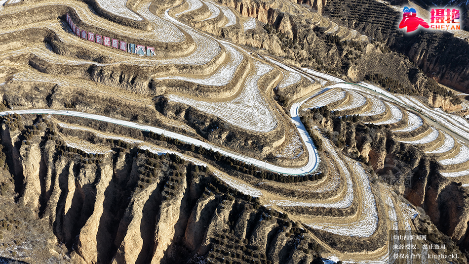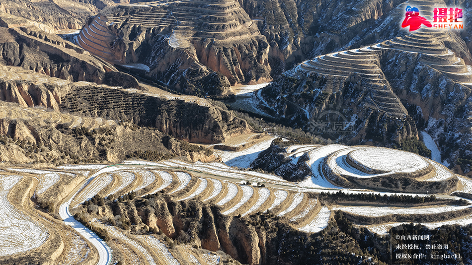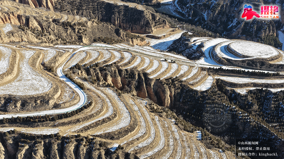 近日,雪后的永和梯田,薄雪轻覆田埂,在沟壑间勾勒出银白弧线。棕褐黄土与素白雪层交错晕染,明暗交织间,厚重黄土地尽显柔和韵律。山风掠过,雪沫游走梯田褶皱,尽显黄土高原独有的冬日肌理,沉默而充满力量。©山西新闻网 发|特约摄影师 李红