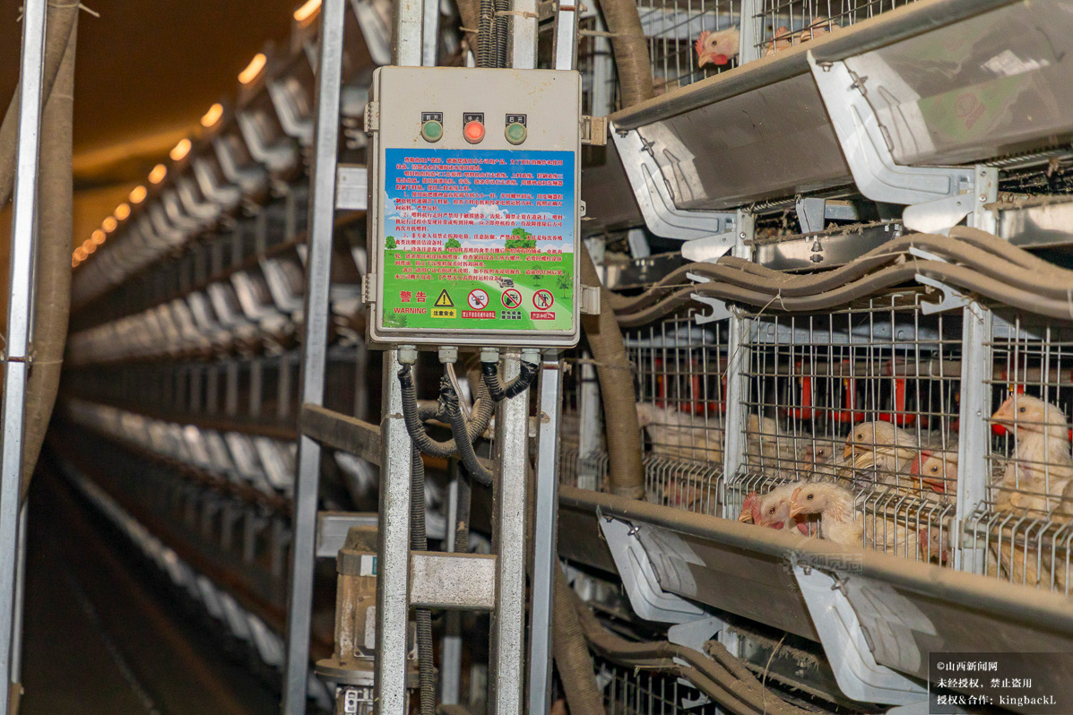鸡栏旁的控制箱是养殖系统的“神经末梢”,面板上的指示灯与按键,串联着通风、温控等设备的运行状态,将现场数据实时传向鸡舍外的中央控制台,让每一个养殖环节都有了“数字触角”。