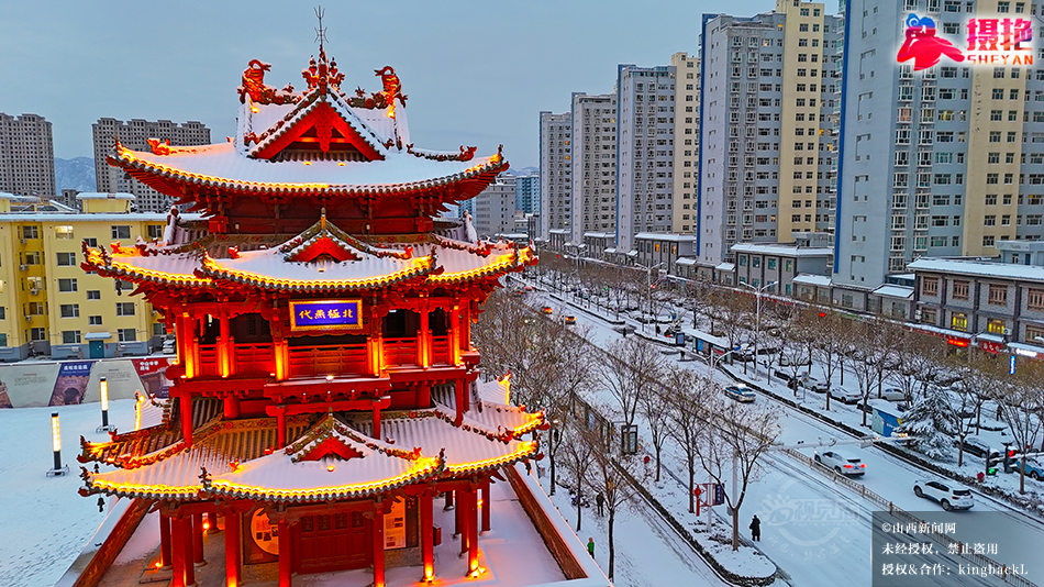 1月20日,大雪过后的运城市区银装素裹,天地间一片素净,恍若一幅浑然天成的水墨画卷。巍峨的钟楼耸立于雪幕之上,古老的池神庙在雪中更显庄严,远处的盐池和中条山共同勾勒出一幅壮美的冬日长卷,人民公园内,古建与高楼在雪中交相辉映,历史与现代在此刻交融,尽显北国风光的独特魅力。©山西新闻网 发|王哲 摄