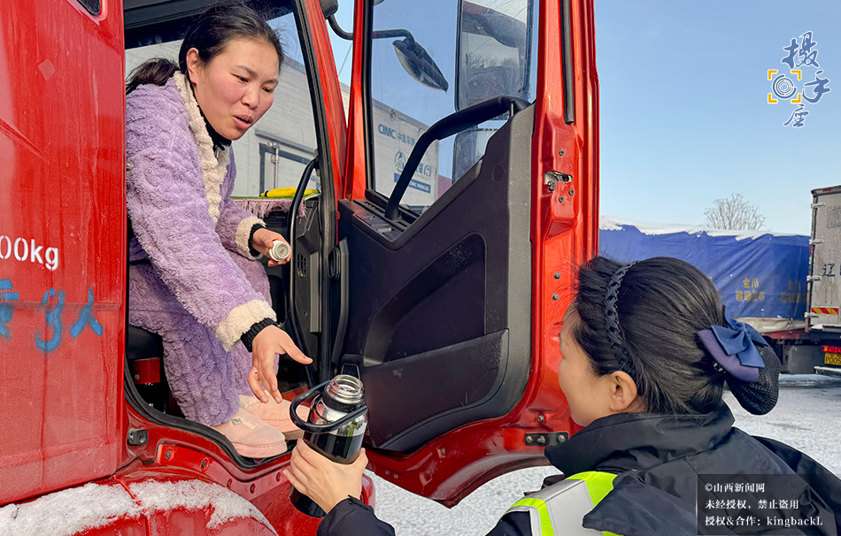 1月19日晚,运城各县突降暴雪,高速新绛收费站职工为滞留司乘送上鸡蛋、牛奶、馒头及开水,以贴心服务化解司乘急难。他们用实际行动践行“我为群众办实事”,在凛冽风雪中传递温情,让滞留旅途的司乘深切感受到“高速温度”。©山西新闻网 发|董应赞 摄