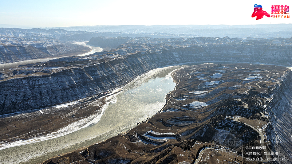近日,受持续降温影响,晋陕峡谷中的黄河永和乾坤湾段现大面积流凌景观。蜿蜒如巨龙的黄河水面上,大小不一的流凌密布,阳光照射下波光粼粼,尽显“水面龙鳞闪金光”的景致。动与静、刚与柔在此交相辉映,赭红崖壁与晶莹冰凌相映成趣,构成一幅雄浑又灵动的冬日自然画卷,尽显黄河独有的冬日韵味。©山西新闻网 发|特约摄影师 李红