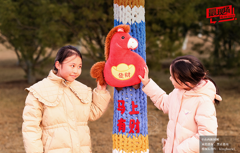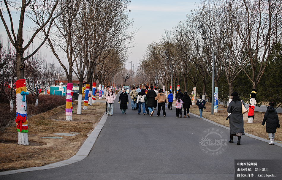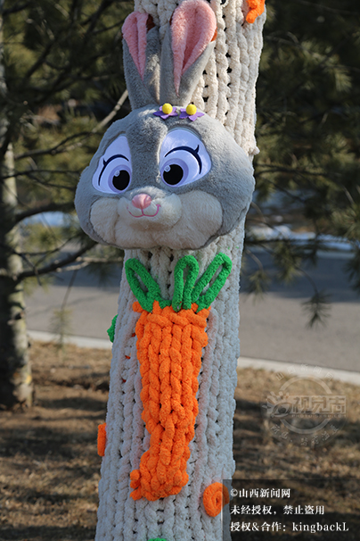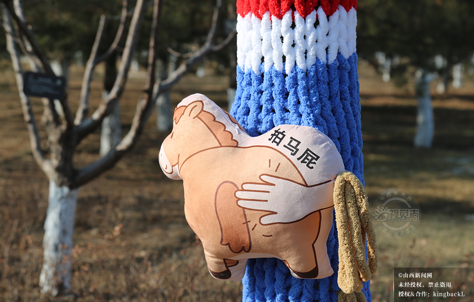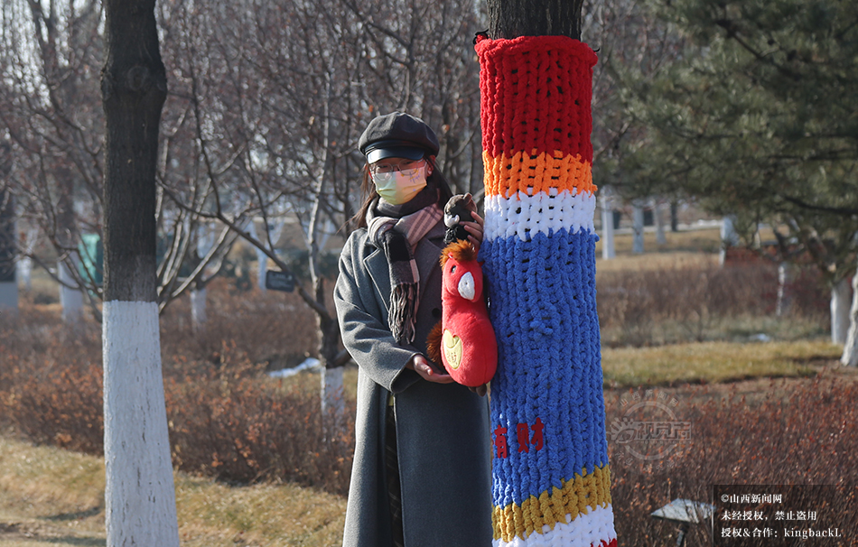 1月24日,太原植物园内的树木披上手工编织的彩色毛线“新装”。这些织物饰有动物、福字等图案,既防寒防虫,又为树木注入艺术气息,提前营造出节日氛围。这一暖心创意吸引众多市民游客打卡,成为冬日里一道温暖亮丽的风景线。©山西新闻网 发|李红 景玉平 摄
