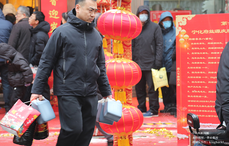 腊八节当天,第六届益元庆腊八文化购物节现场人气爆棚,市民游客排起长队打醋,只为腌制腊八蒜、备年货,现场民俗表演轮番上演。老太原的年味儿,在浓郁的醋香与热闹的打醋场景里拉满。©山西新闻网 发|特约摄影师 李红