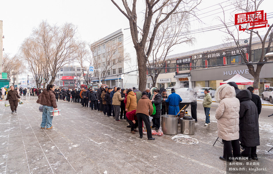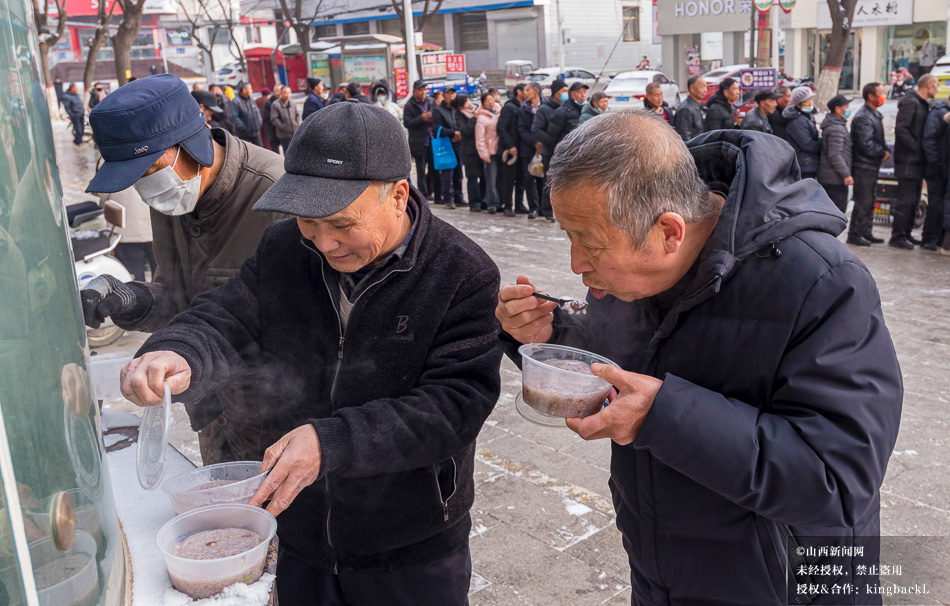 1月26日腊八节,陵川县一商家为市民免费派送腊八粥。腊八粥甄选八种以上食材熬煮,香甜软糯。一早工作人员便忙碌备粥,市民纷纷排队领取,或现场品尝或打包分享,一碗热粥传递温暖,拉开新春序幕。©山西新闻网 发|李张成 摄