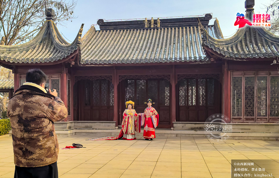 1月23日,一对新人在运城市空港北区的苏式园林内拍摄婚纱照。这里复刻姑苏雅韵,为河东大地平添江南温婉,其园林为香山派宗师封笔之作,藏9万平米纯正苏州园林,以太湖石、文化长廊、亭台水榭勾勒江南景致,中式院落实现“园中有宅,宅中有园”的人居理想,成为运城独具诗意的打卡地。©山西新闻网 发|董应赞 摄