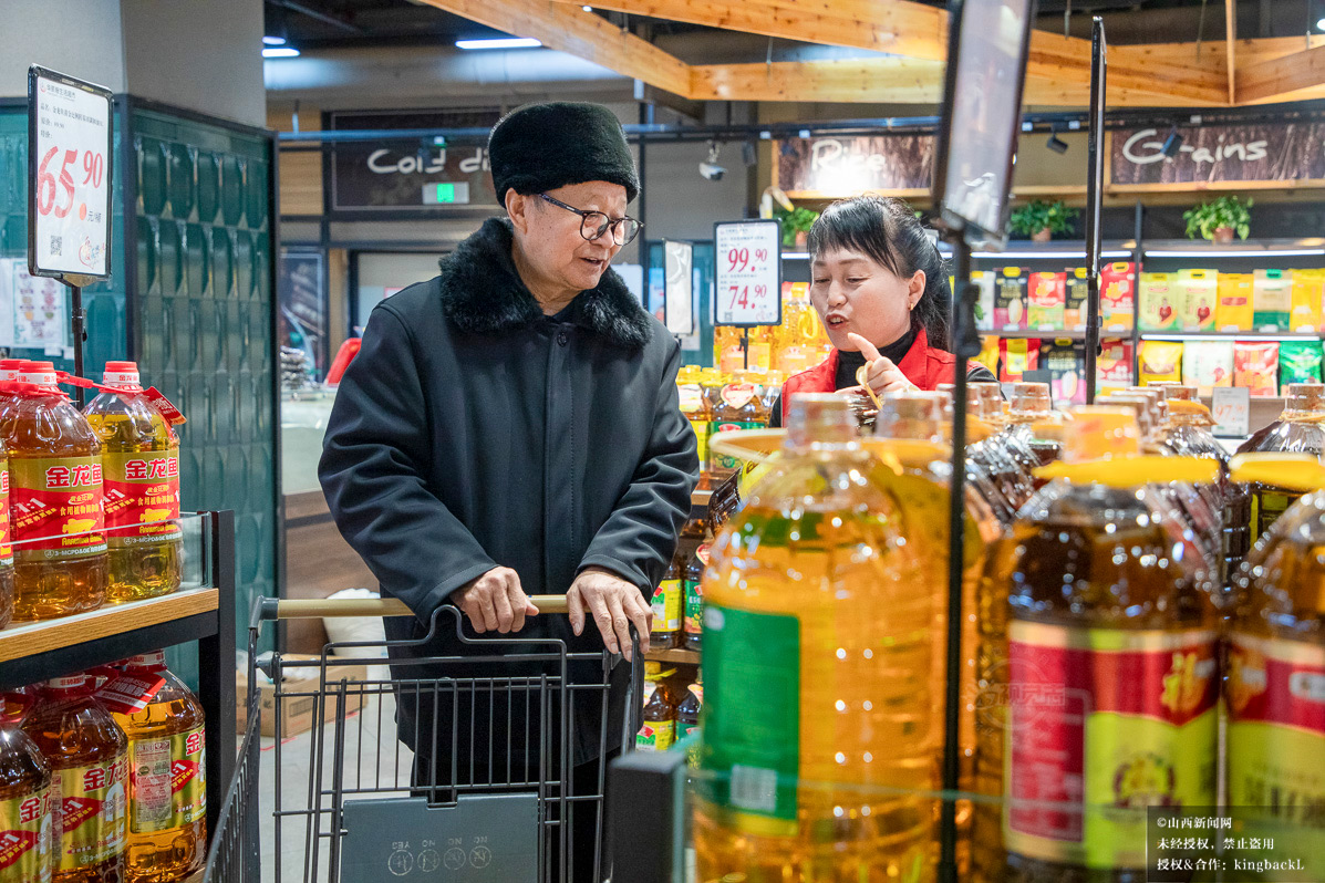 粮油区前,导购正向市民介绍产品特点,从优质大米到各类食用油,丰富品类全方位覆盖民生需求,让采购更省心。