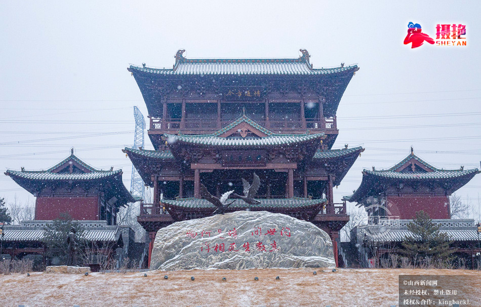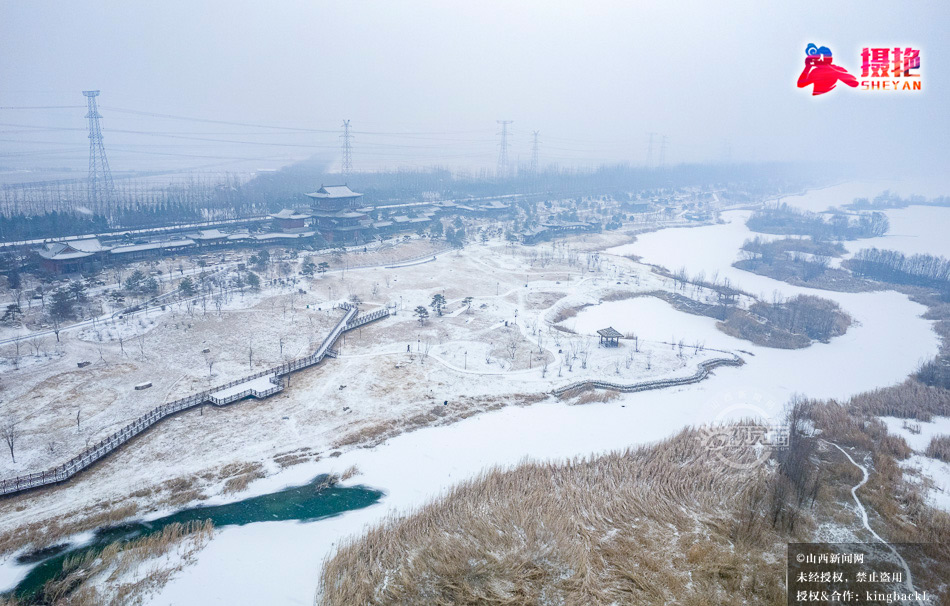 1月25日,瑞雪飘落太原汾河公园四期北段雁丘园,这座元好问《摸鱼儿・雁丘词》的诞生地,在冰雪中尽显诗意。冰封汾河如素练铺展,覆雪的仿金元古建与廊亭飞檐相映,刻词巨石前的双雁青铜雕塑凝雪伫立。园内保洁工人清扫步道,游人驻足赏雪,朱红廊柱、青灰瓦当裹雪成景。作为汾河生态廊道文化地标,雁丘园融湿地生态与金元文脉,瑞雪让三晋文学温度与冬日美景相融,勾勒出跨越时空的浪漫。©山西新闻网 发|樊晓东 摄