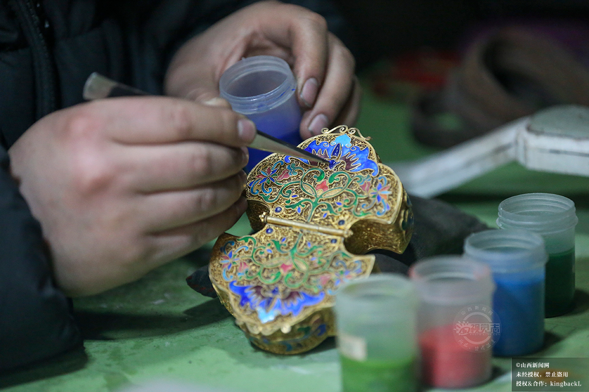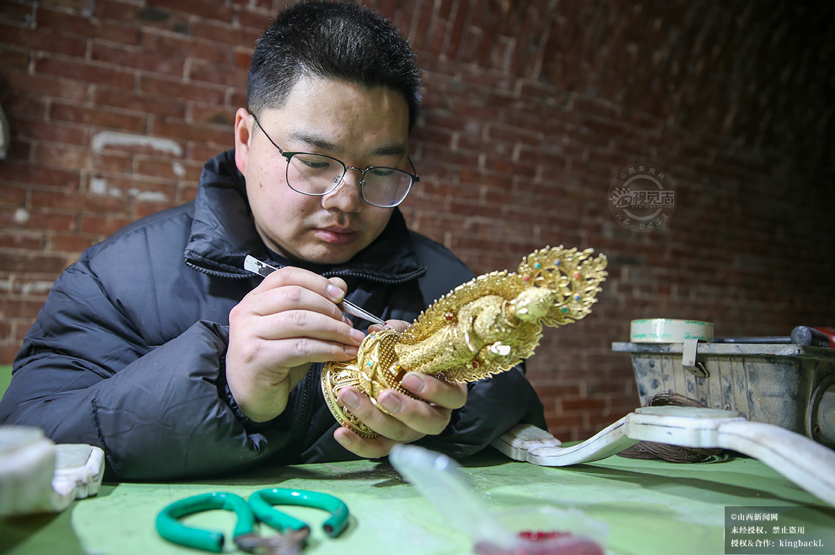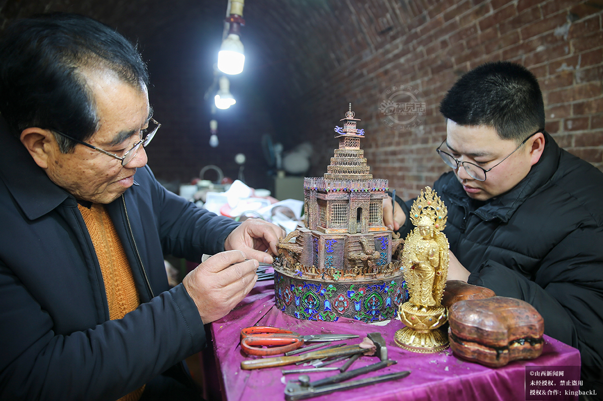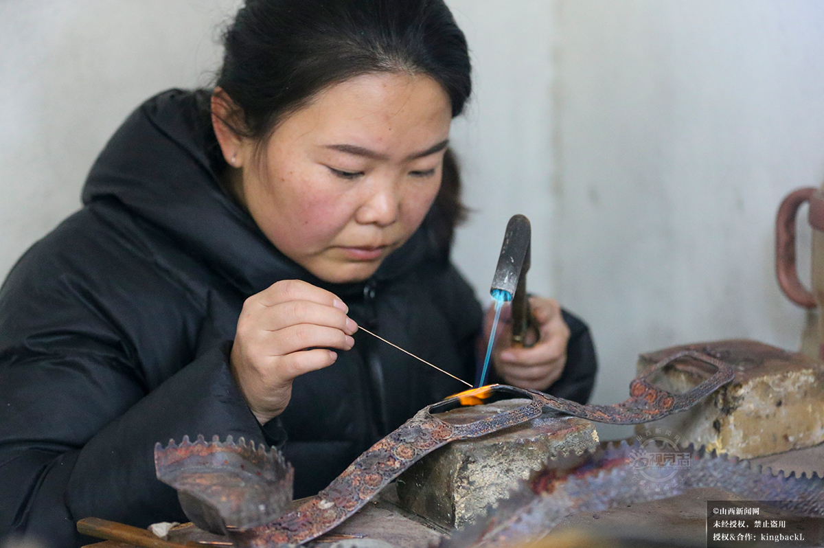 隆冬时节,晋南黄土高原上的稷山县太阳乡坞堆村静谧安详。1月26日,村内的昌裕工艺品车间里却暖意融融,省级非物质文化遗产金银累丝制作技艺代表性传承人薛新明正与工人们俯身案前,指尖捻动着细如发丝的金银铜丝,在焊枪的微火中勾勒着器物的轮廓。光线穿过交织的丝线,在工作台面上投下细碎的光斑,每一次焊接的火花闪烁,都是对这项千年技艺的深情守望。主编|刘昱 组稿|张春颖 ©山西新闻网 发|特约摄影师 史云平
