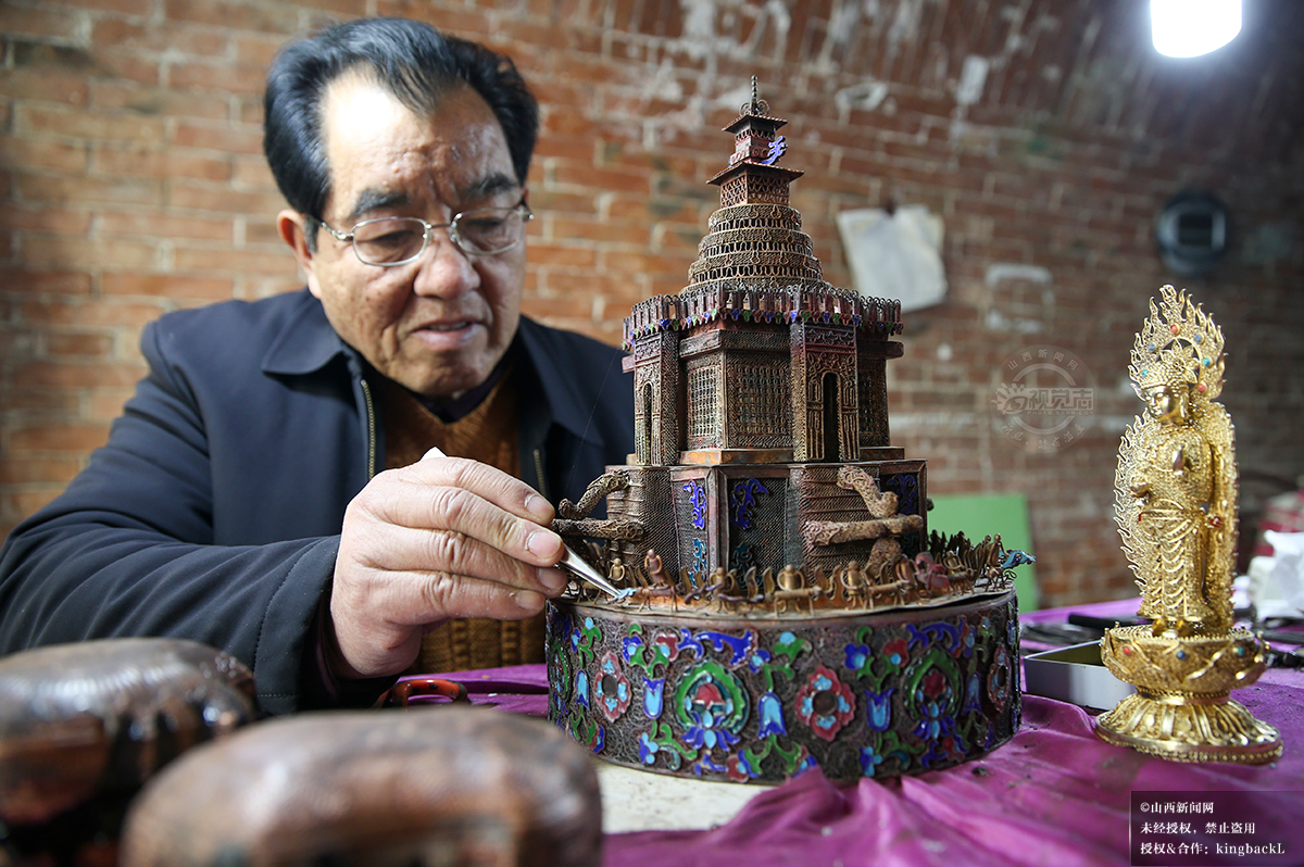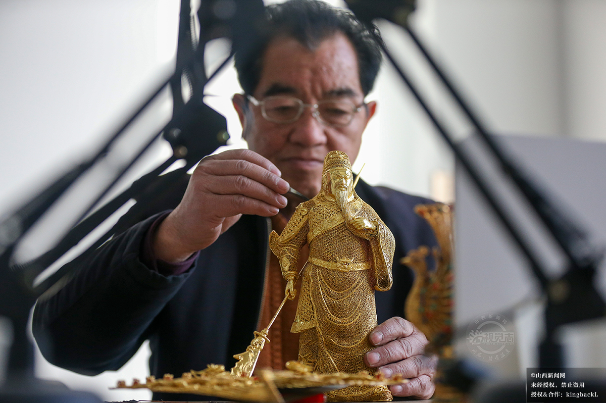 潜心钻研累丝工艺40余年的薛新明,始终坚守合丝、盘曲、织编等传统技法,同时在题材创作与造型设计上寻求突破,让古老技艺适配当代审美。在他的带领下,团队佳作频出,一件件作品既保留晋派累丝的古朴神韵,又融入时代元素,在各类展会中屡获殊荣。